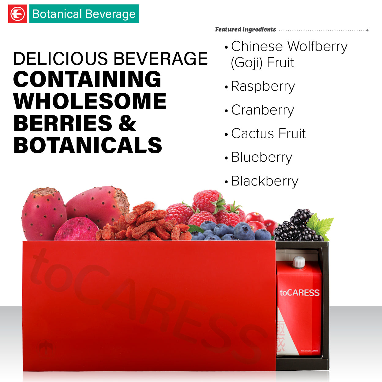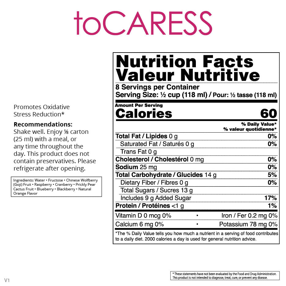 toCARESS is a delicious beverage containing wholesome berries and botanicals. Your skin loves these hydrating ingredients and will feel its best from the inside out!